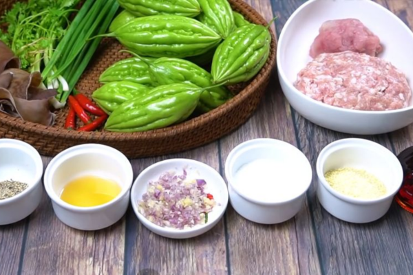 Để nấu được 1 bát canh khổ qua nhồi thịt, chúng ta cần có:
