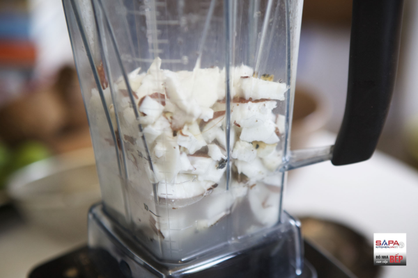 Bước 4: Đặt các miếng vào một may xay sinh tố.