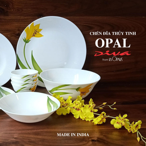 Chén đĩa thuỷ tinh trắng Diva LaOpala