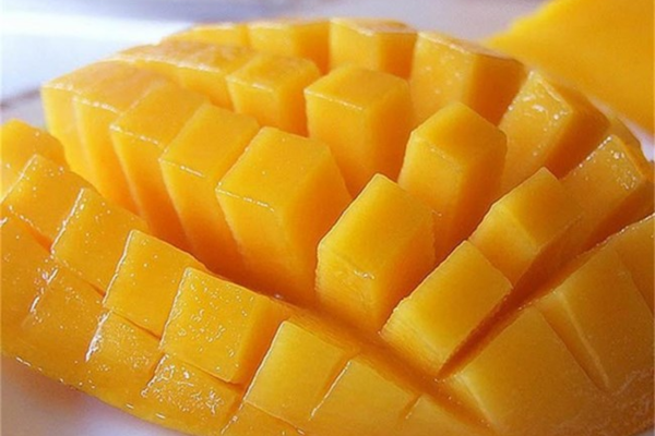 Với xoài chín: Để nguyên vỏ, cắt 2 bên má, rạch những ô vuông sát vỏ nhưng chú ý không khiến vỏ bị rời ra. Sau đó lật ngược 2 miếng xoài lại tạo thành “hoa xoài”.