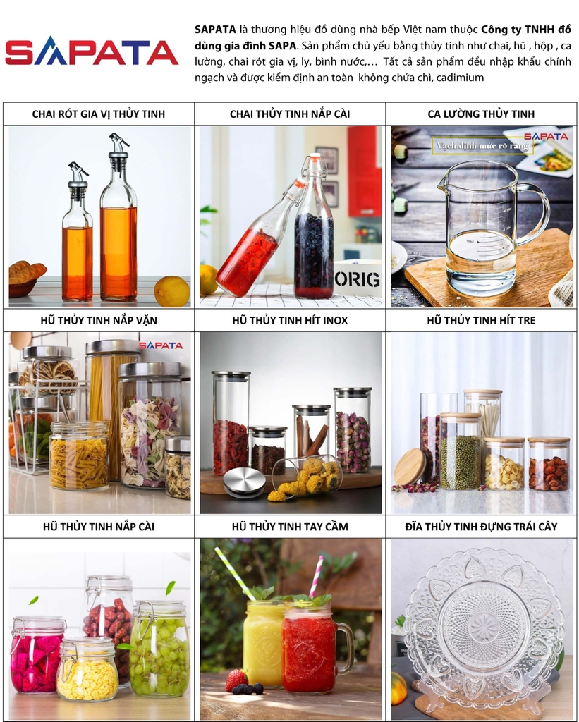 SAPATA là thương hiệu đồ dùng nhà bếp Việt nam thuộc Công ty TNHH đồ dùng gia đình SAPA. Sản phẩm chủ yếu bằng thủy tinh như chai, hũ , hộp , ca lường, chai rót gia vị, ly, bình nước,…