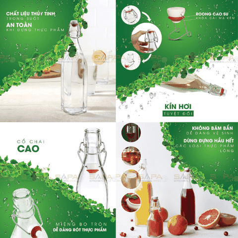 Cùng là chai nắp cài nhưng ở Sapakitchen có đến 3 kiểu dáng chai để bạn tha hồ chọn lựa bao gồm: