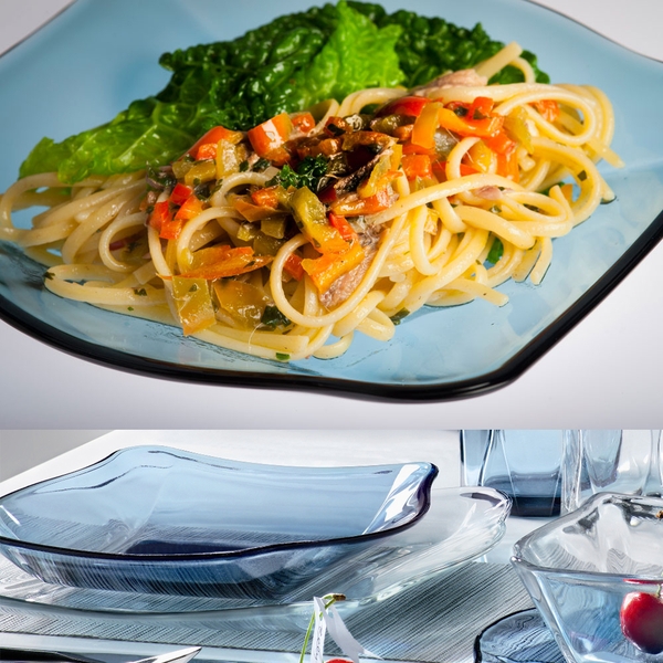 Đĩa thủy tinh vuông Nettuno Blue 28 màu xanh (Bormioli Rocco)