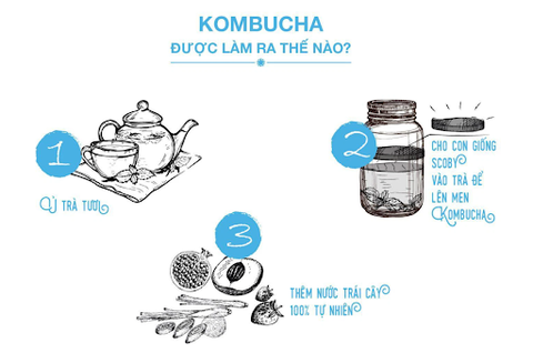 Kombucha là một loại thức uống lên men từ trà có vị chua và ngọt thanh. Thức uống này được làm từ quá trình lên men gồm trà (trà xanh, trà đen), đường với con giống SCOBY (cộng sinh của vi khuẩn và nấm men). Đây là một loại nước uống mà cộng đồng mạng vẫn thường truyền tai nhau là loại trà bất tử, bởi nó làm nên sự thay đổi cho sức khỏe, vóc dáng, làn da từ sâu bên trong.