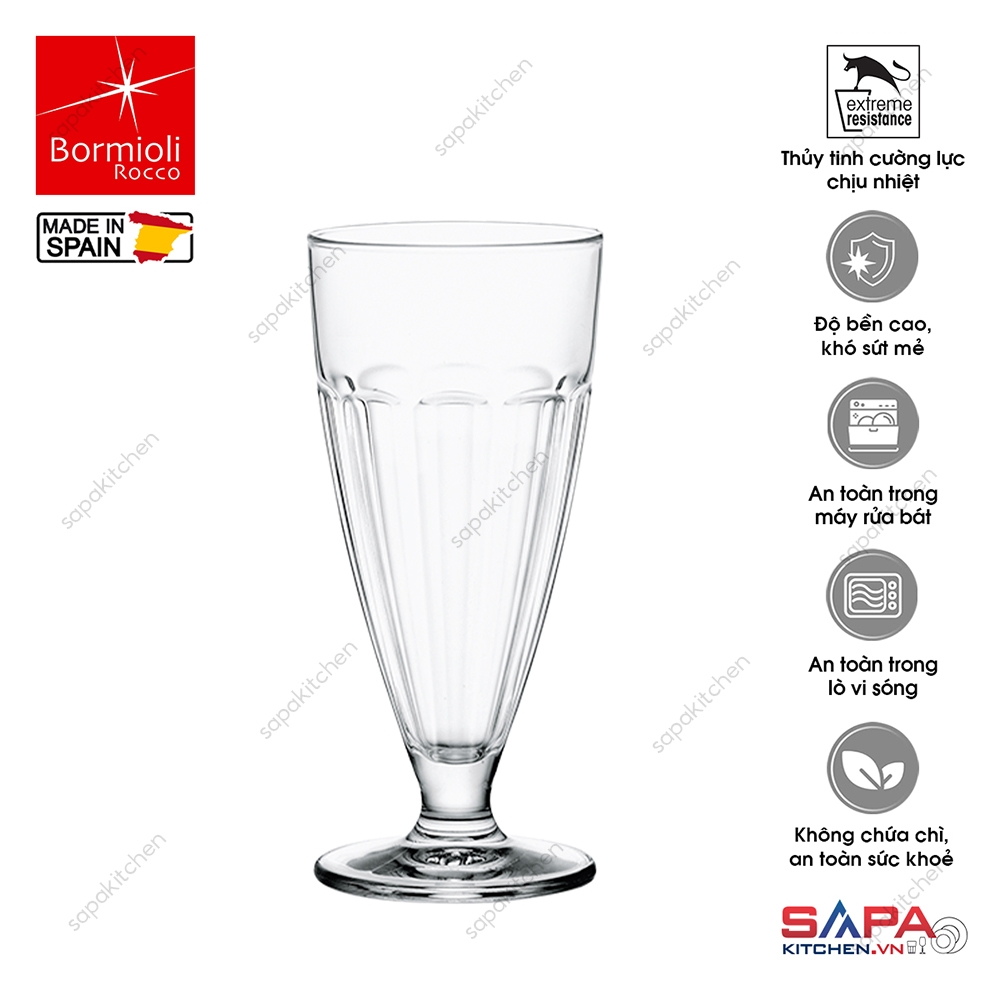 Ly uống nước được làm từ hất liệu cao cấp an toàn, không bám màu, bám mùi thực phẩm, dễ vệ sinh, màu trong suốt trang trí món ăn cực kỳ bắt mắt. Ly kem thủy tinh Rock Bar dung tích 39cl, có kiểu dáng giống chiếc cup với phần thân cao giúp hiển thị thức uống trông hấp dẫn hơn. Phần chân rộng giúp ly đứng vững một cách chắc chắn.