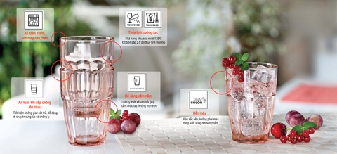 Điểm khác biệt nổi bật của dòng ly thủy tinh Rock Bar chính là được gia cường nhiệt đặc biệt giúp sản phẩm có khả năng chịu nhiệt sốc nhiệt cao và độ bền gấp 3 lần so với thủy tinh thường, khó sứt mẻ bể vỡ. Thiết kế tiện dụng dễ dàng xếp chồng lên nhau. Điều này giúp tiết kiệm không gian lưu trữ cũng như dễ dàng di chuyển một số lượng lớn sản phẩm cùng một lúc. Ly thủy tinh được làm từ chất liệu thủy tinh cường lực cao cấp, đạt tiêu chuẩn của châu Âu, có độ bền cao dễ chùi rửa.