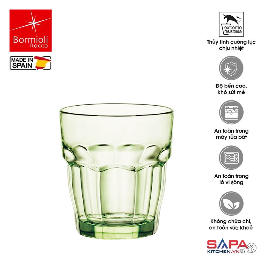 Ly thủy tinh chịu nhiệt Rock bar 27 cl xanh bạc hà là sản phẩm thủy tinh cường lực độc đáo của thương hiệu Ý - Bormioli Rocco, nhà máy sản xuất đặt tại Tây Ban Nha với kinh nghiệm hơn 50 năm trong việc sản xuất các sản phẩm thủy tinh cường lực. Ly thủy tinh Rock Bar có độ bền vượt trội với kiểu dáng đơn giản, cổ điển, nhìn thoáng qua bạn khó có thể nhận ra điểm khác biệt của nó. Tuy vậy, chỉ cần xem qua loạt tính năng dưới đây của Rock Bar, bạn sẽ biết được tại sao Rock Bar lại là một trong những loại ly thủy tinh được đánh giá là tốt nhất.