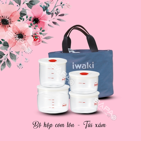 Bộ 4 hộp thuỷ tinh iwaki kèm túi giữ nhiệt