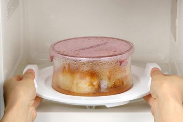 Hâm nóng thực phẩm trong lò vi sóng bằng hũ thủy tinh Iwaki (Ảnh minh họa)
