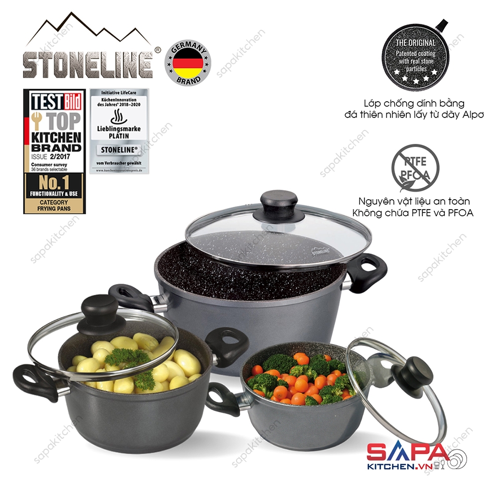 4- Stoneline (Đức): sản phẩm Nồi chảo chống dính phủ đá thiên nhiên