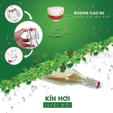 Nắp cài kín hơi cũng là một điểm cộng không hề nhỏ để sản phẩm trông khác biệt hơn hẳn những chai thủy tinh nắp cài khác được bán với giá thành rẻ hơn. Với chất liệu cao su kín hơi, cộng với phần khóa cài kim loại được tạo hình vừa khớp giúp nắp chai dễ đóng - mở nhưng vẫn kín hơi và vô cùng chắc chắn.